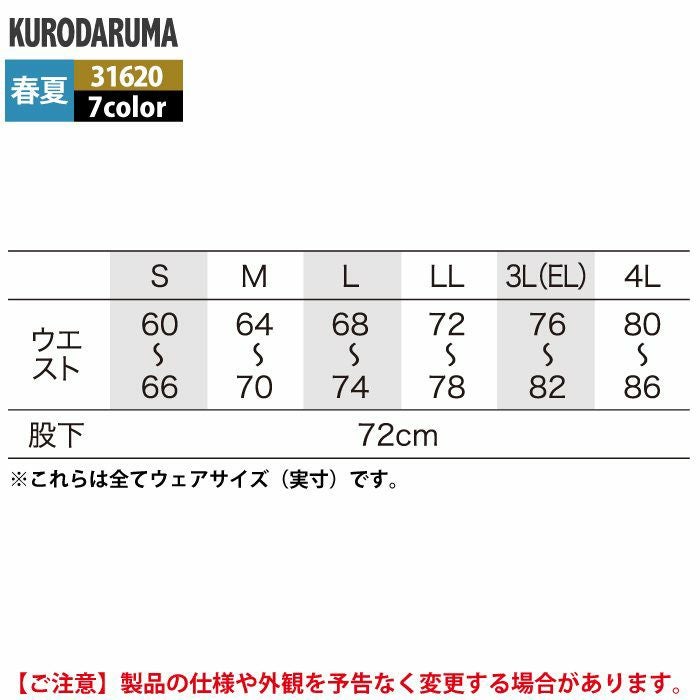作業服 作業着 クロダルマ 作業服 春夏用 31618 スラックス 70-88