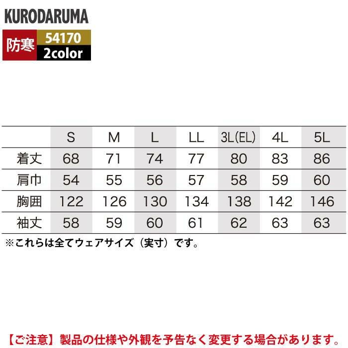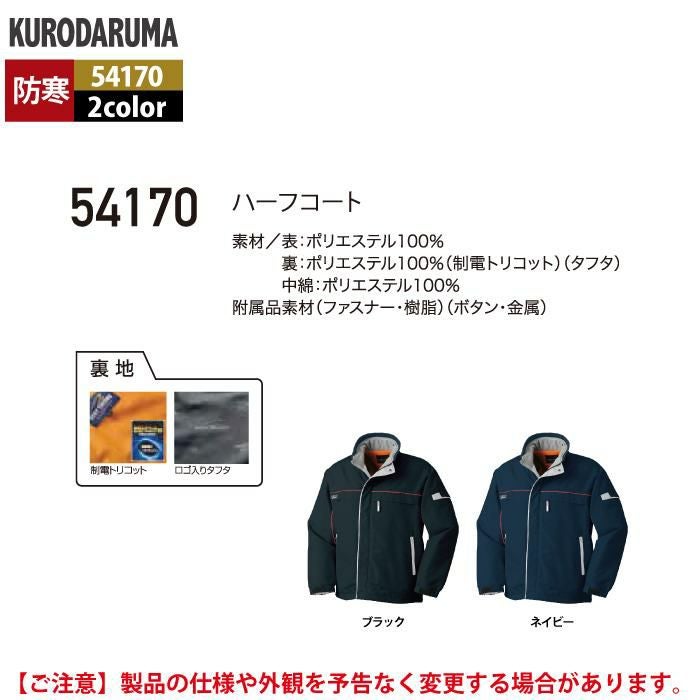 作業服 作業着 クロダルマ 作業服 防寒着 秋冬用 54170 ハーフコート 3L-5L