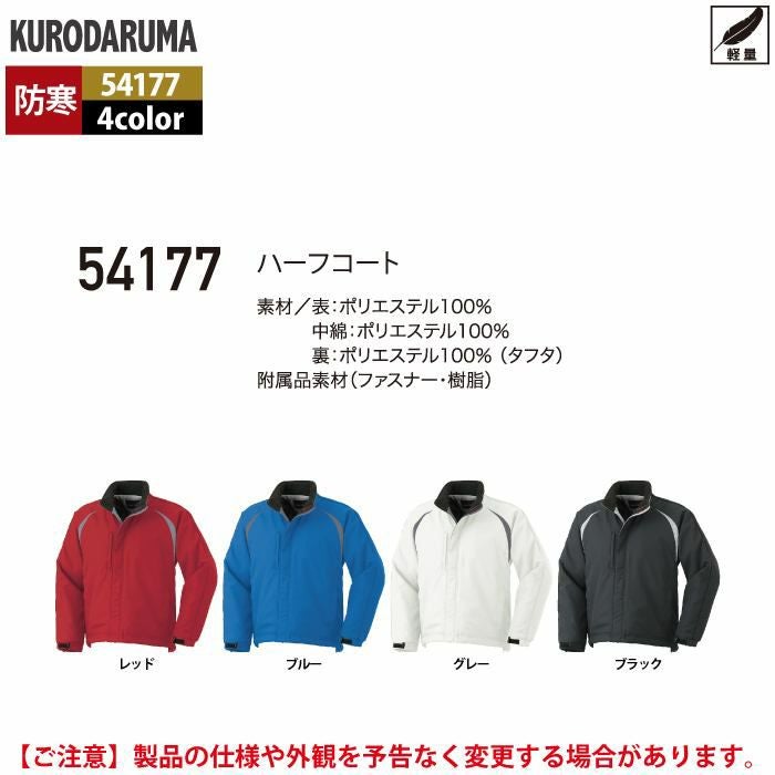 作業服 作業着 クロダルマ 作業服 防寒着 秋冬用 54177 ハーフコート S-LL