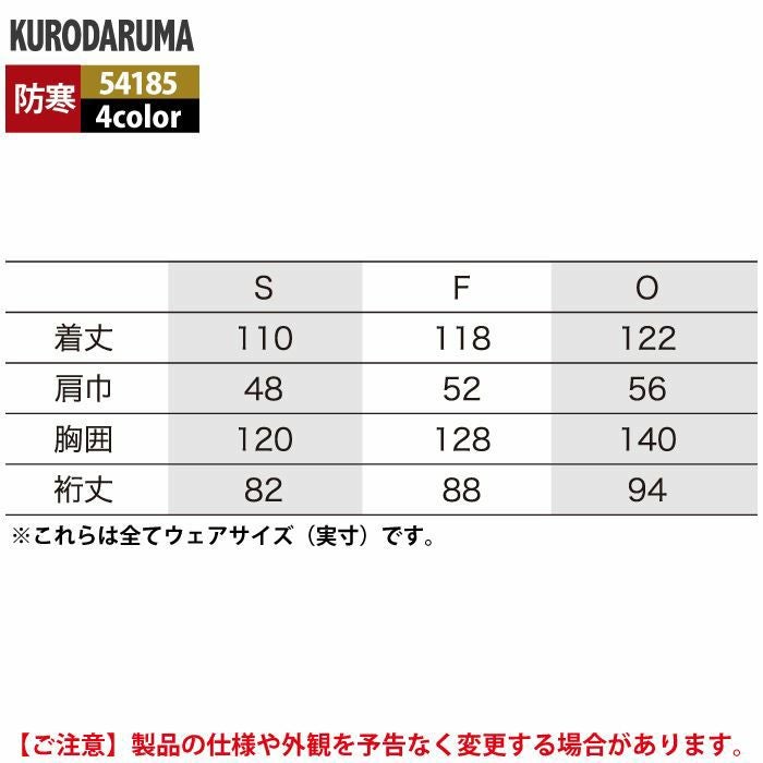 作業服 作業着 クロダルマ 作業服 防寒着 秋冬用 54185 ベンチコート S-F