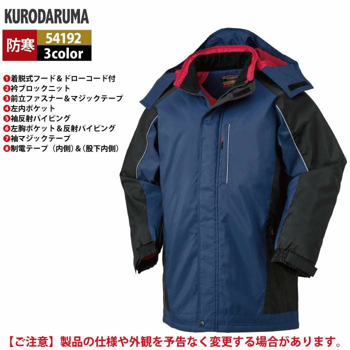 作業服 作業着 クロダルマ 作業服 防寒着 秋冬用 54192 コート S-LL