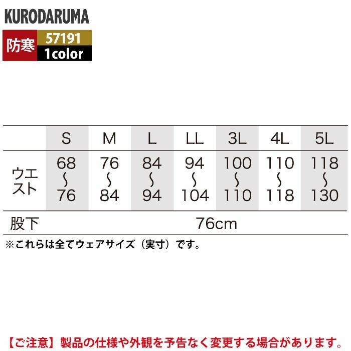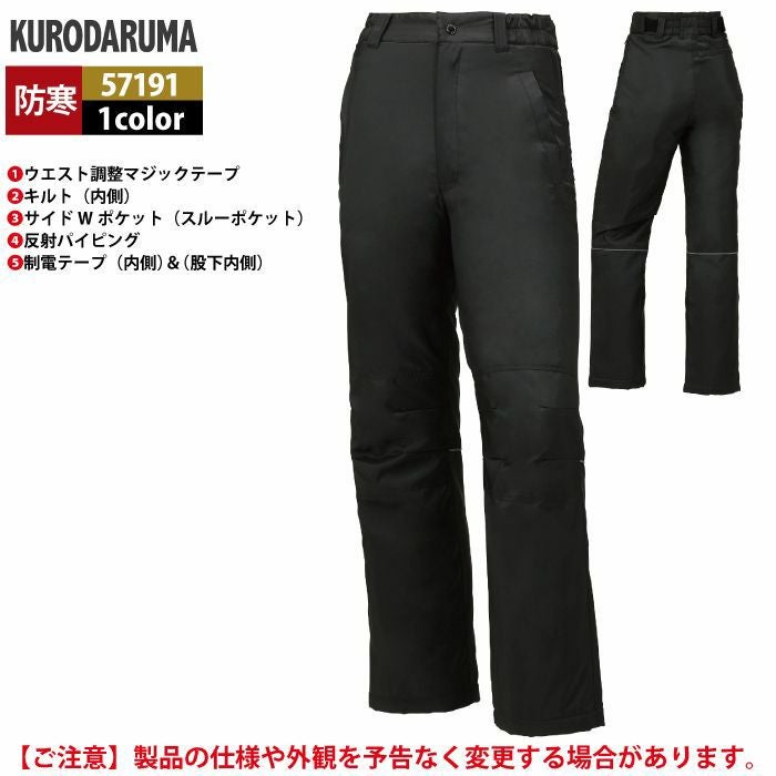 作業服 作業着 クロダルマ 作業服 防寒着 秋冬用 57172 防水防寒パンツ S-LL