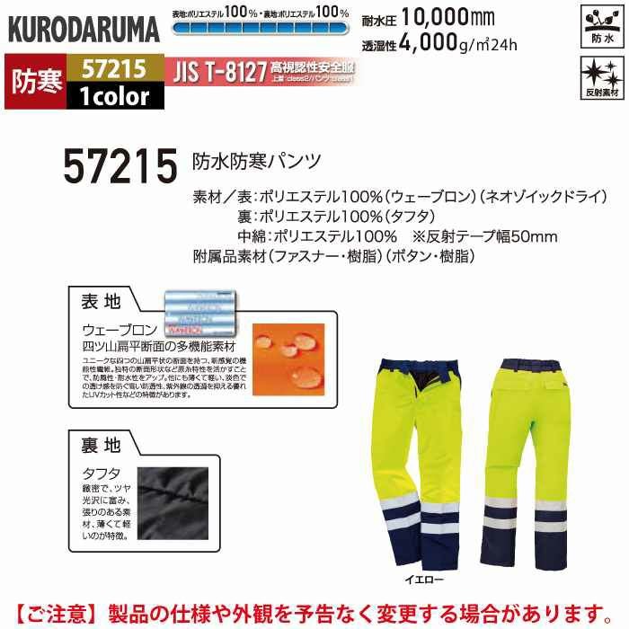 作業服 作業着 クロダルマ 作業服 防寒着 秋冬用 57215 防水防寒パンツ 3L-5L