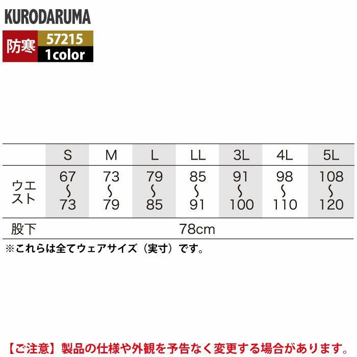 作業服 作業着 クロダルマ 作業服 防寒着 秋冬用 57215 防水防寒パンツ S-LL