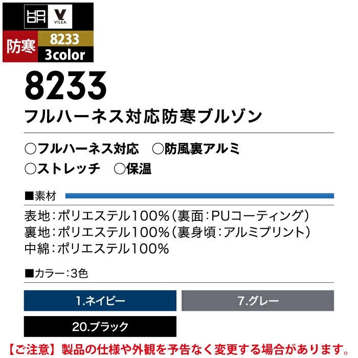 村上被服 HOOH 鳳凰 作業服 作業着 村上被服 HOOH 鳳凰 作業服 防寒着 8233 フルハーネス対応防寒ブルゾン 8L