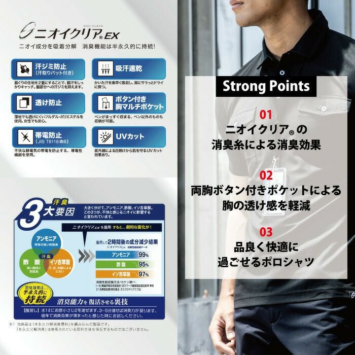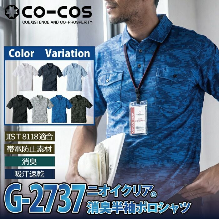 コーコス 作業服 作業着 作業ズボン コーコス 作業服 秋冬用 G-2737 ニオイクリア消臭半袖ポロシャツ SS-LL