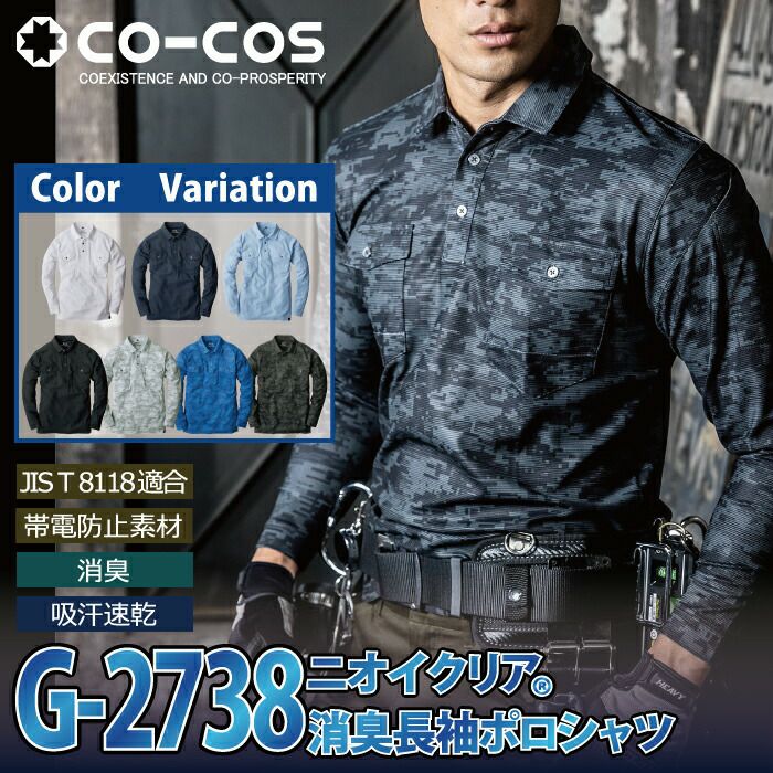 コーコス 作業服 作業着 作業ズボン コーコス 作業服 秋冬用 G-2738 ニオイクリア消臭長袖ポロシャツ SS-LL
