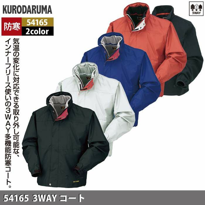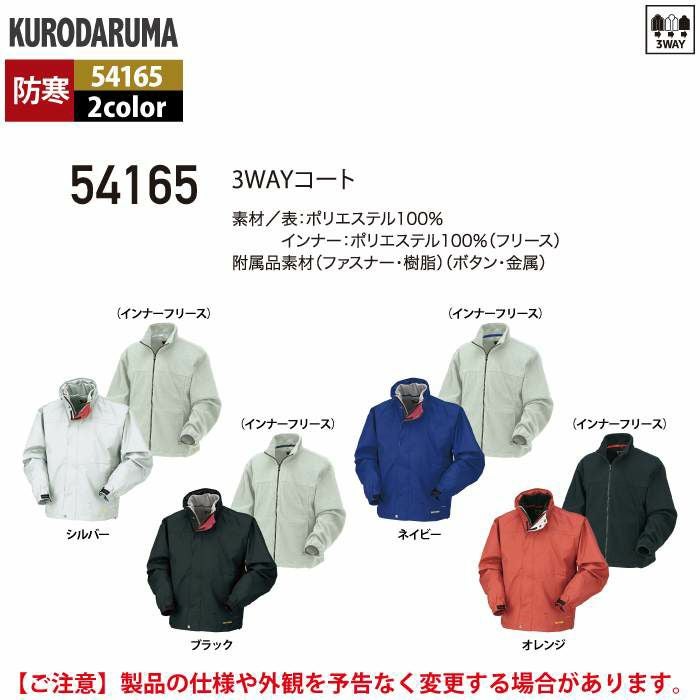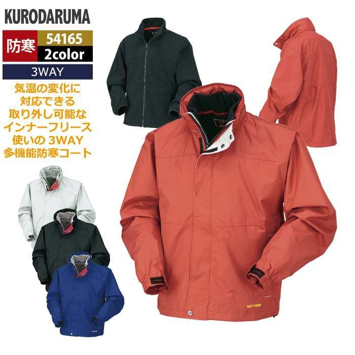 作業服 作業着 クロダルマ 作業服 防寒着 秋冬用 54165 3WAYコート S-LL