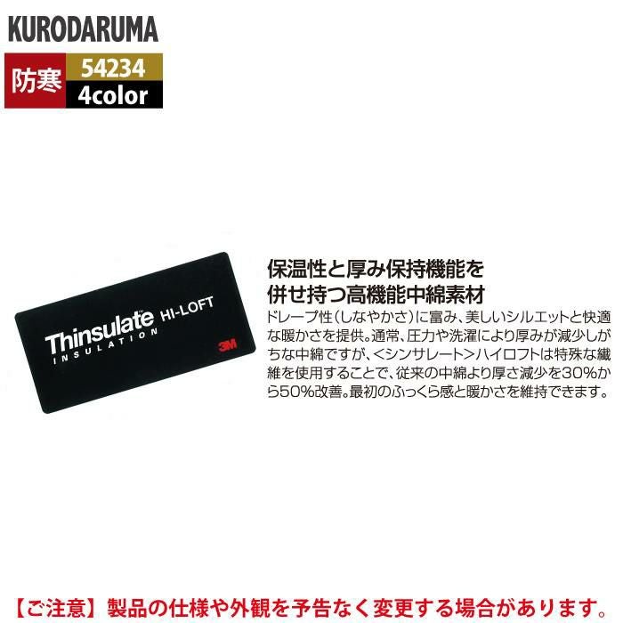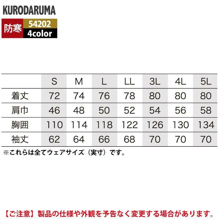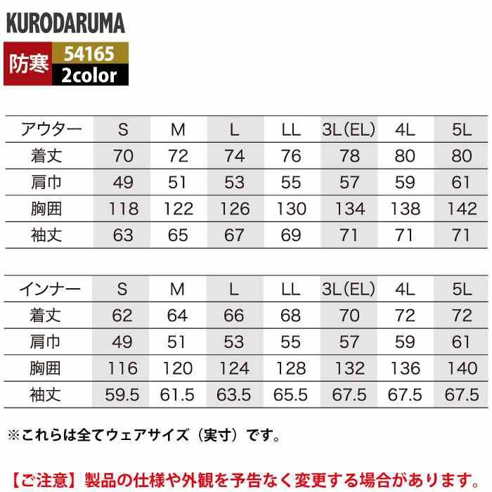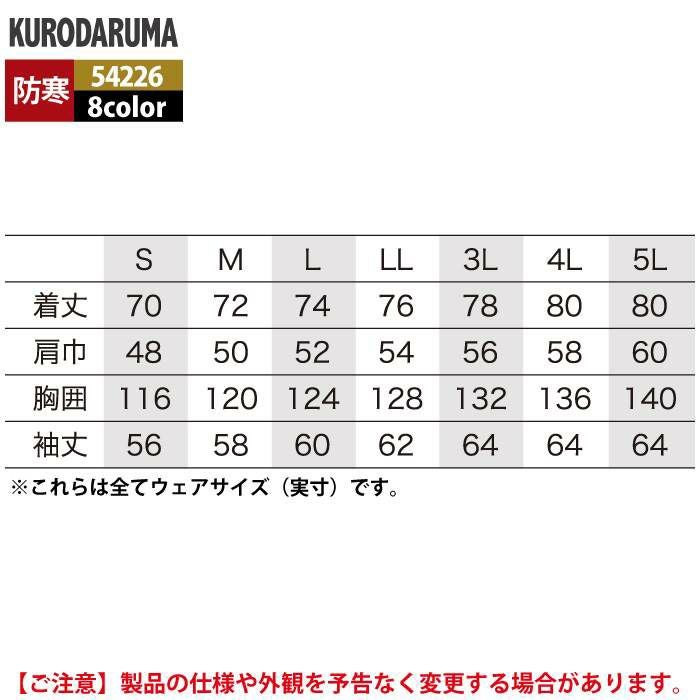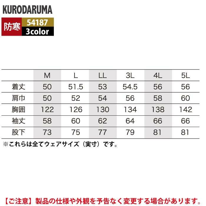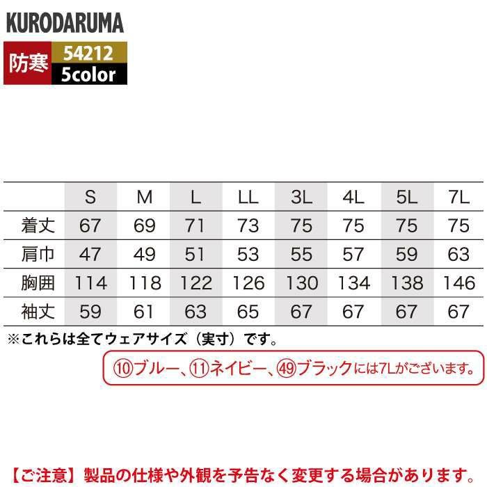 作業服 作業着 クロダルマ 作業服 防寒着 秋冬用 54236 セミキルトVヤッケ 3L