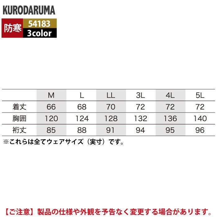 作業服 作業着 クロダルマ 作業服 防寒着 秋冬用 54183 ジャンパー 3L-5L