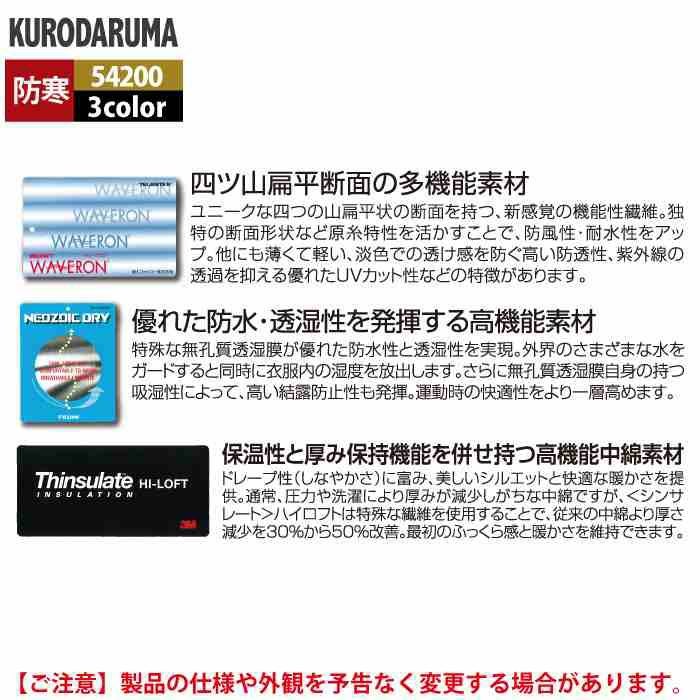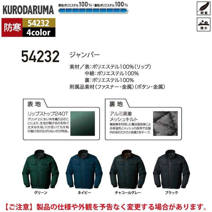 作業服 作業着 クロダルマ 作業服 防寒着 秋冬用 54200 防水防寒ジャンパー S-LL