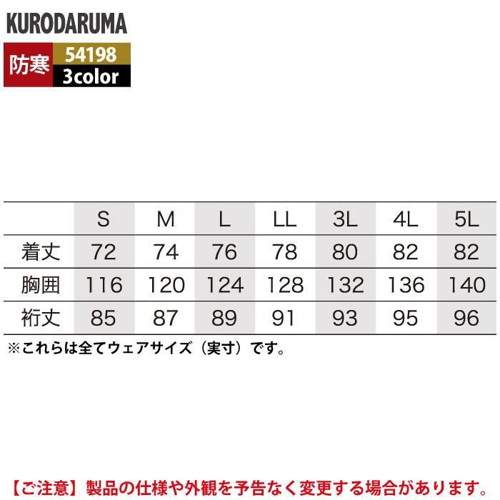 作業服 作業着 クロダルマ 作業服 防寒着 秋冬用 54198 コート 3L-5L