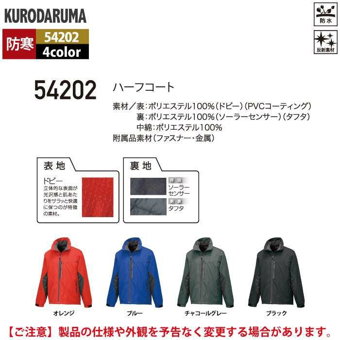 作業服 作業着 クロダルマ 作業服 防寒着 秋冬用 54202 ハーフコート 3L-5L