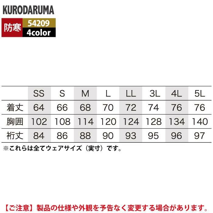 作業服 作業着 クロダルマ 作業服 防寒着 秋冬用 54209 ハーフコート 3L-5L
