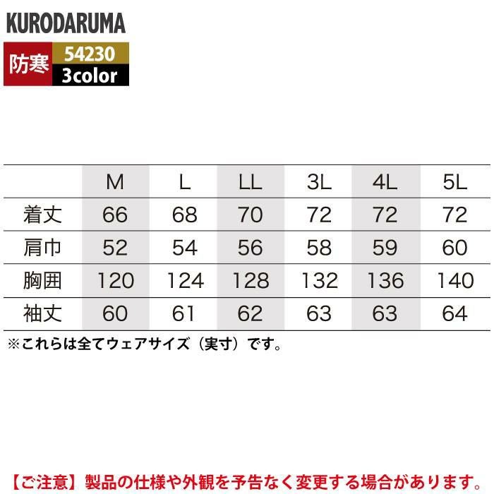 作業服 作業着 クロダルマ 作業服 防寒着 秋冬用 54230 ジャンパー 3L-5L