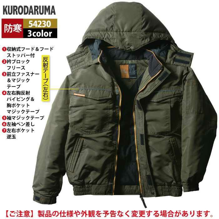 作業服 作業着 クロダルマ 作業服 防寒着 秋冬用 54230 ジャンパー M-LL