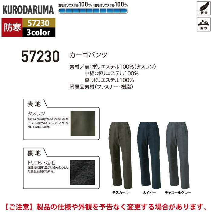 作業服 作業着 クロダルマ 作業服 防寒着 秋冬用 57230 カーゴパンツ M-LL
