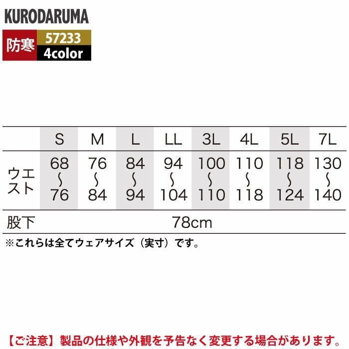 作業服 作業着 クロダルマ 作業服 防寒着 秋冬用 57233 防水防寒パンツ 7L