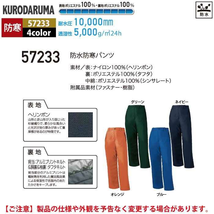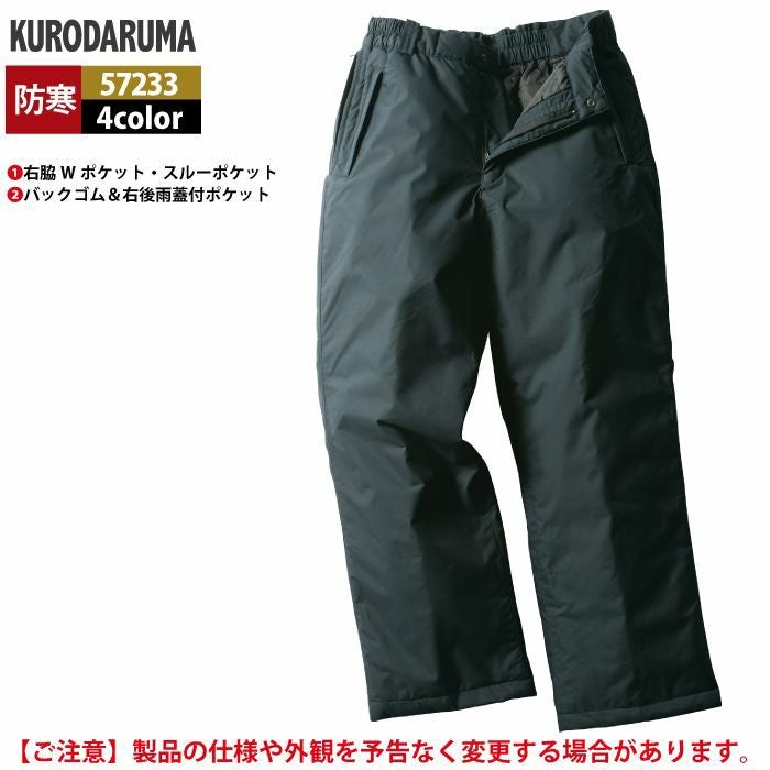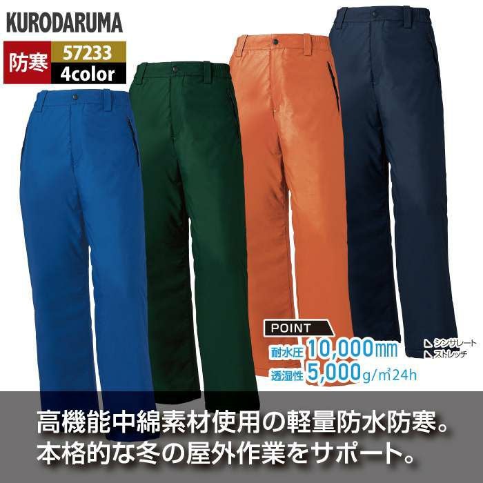 作業服 作業着 クロダルマ 作業服 防寒着 秋冬用 57233 防水防寒パンツ S-LL