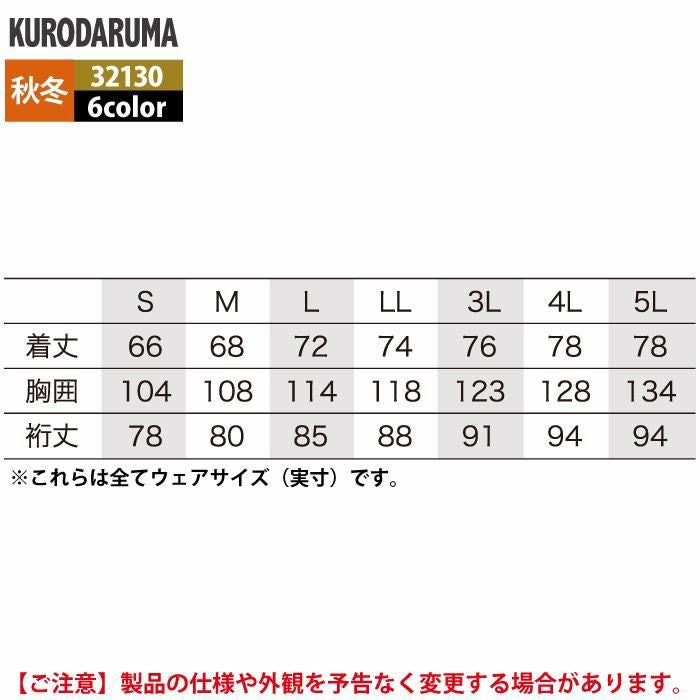 作業服 作業着 クロダルマ 作業服 秋冬用 32130 ウインドブレーカー 3L-5L
