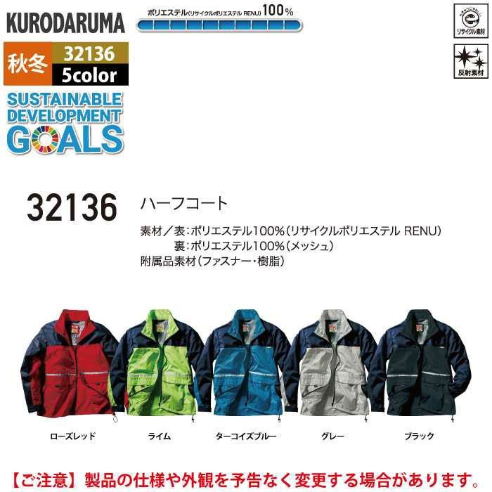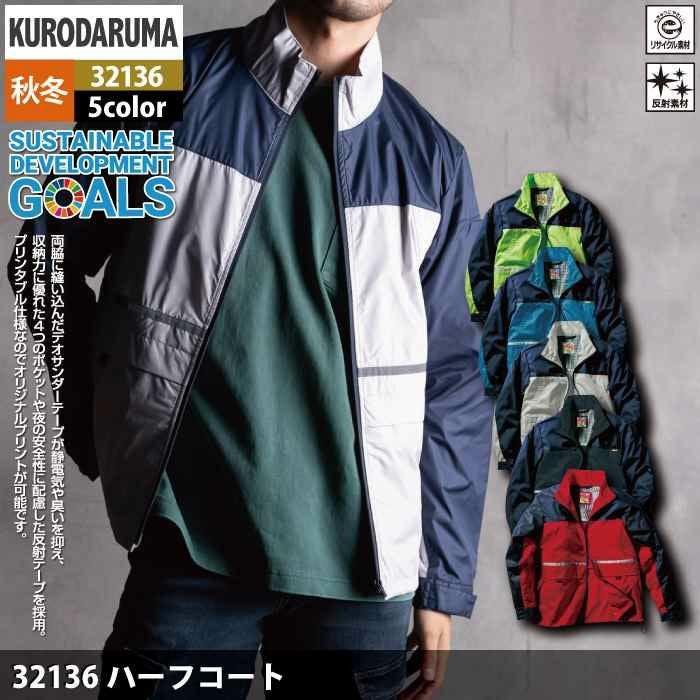 作業服 作業着 クロダルマ 作業服 秋冬用 32136 ハーフコート S-LL