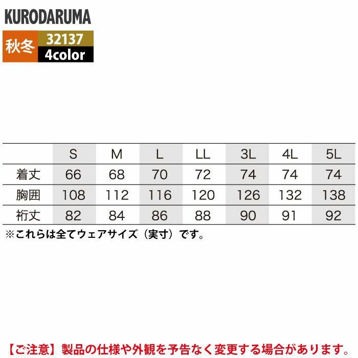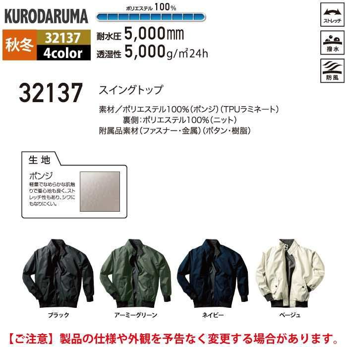 作業服 作業着 クロダルマ 作業服 秋冬用 32137 スイングトップ 3L-5L