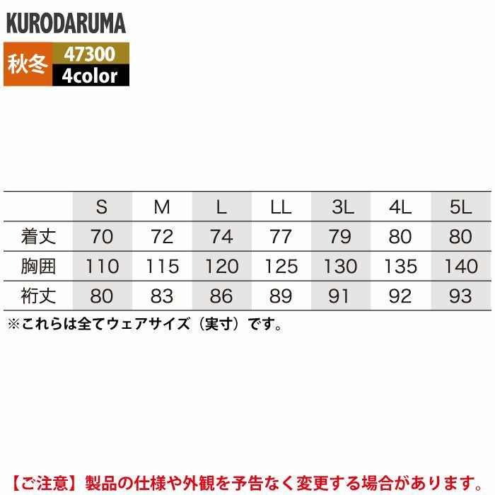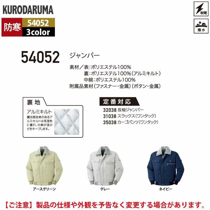 作業服 作業着 クロダルマ 作業服 防寒着 秋冬用 54052 ジャンパー 3L-5L