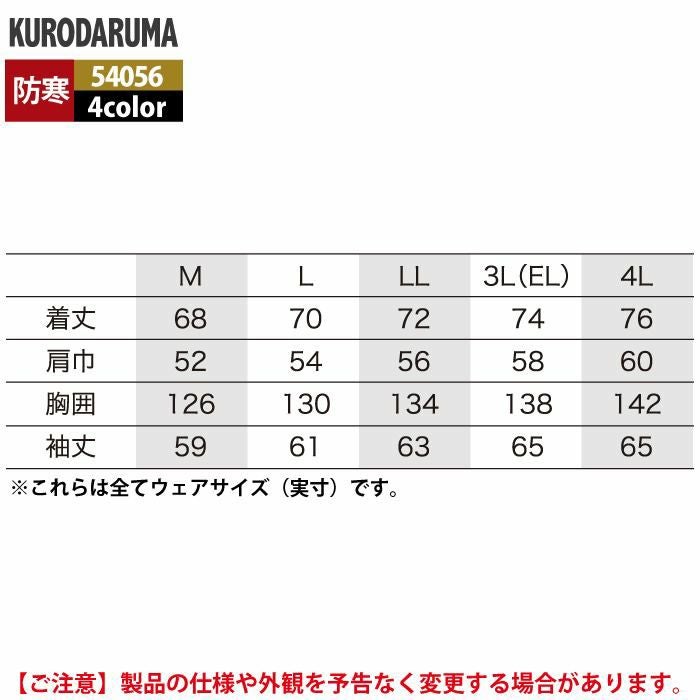 作業服 作業着 クロダルマ 作業服 防寒着 秋冬用 54056 ジャンパー 3L-4L