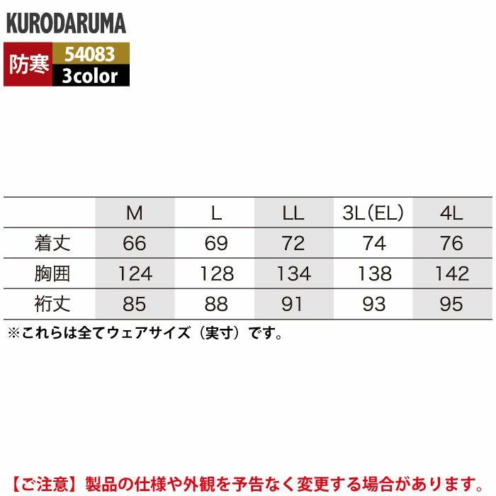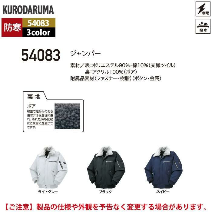作業服 作業着 クロダルマ 作業服 防寒着 秋冬用 54083 ジャンパー 3L-4L