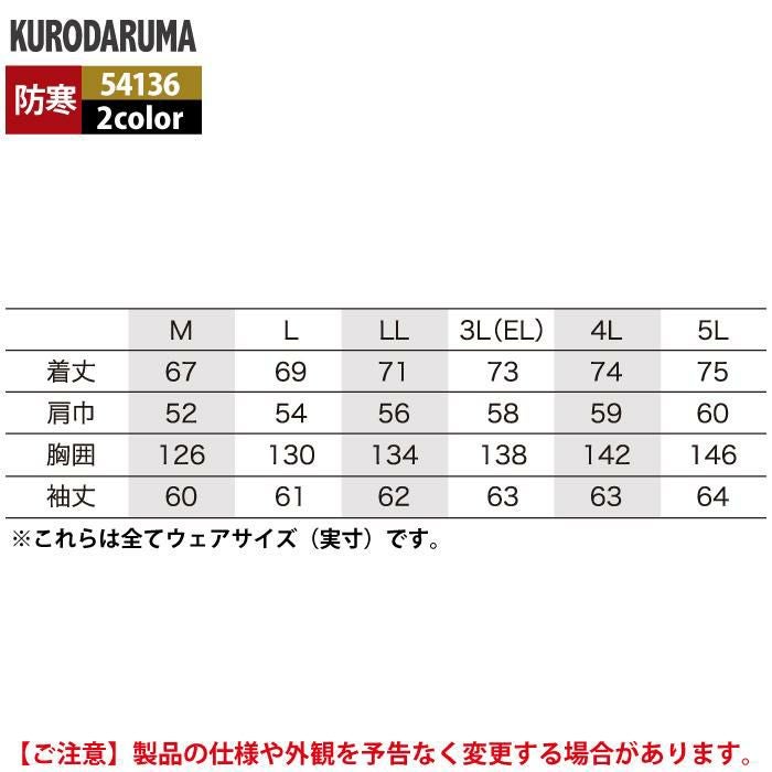 作業服 作業着 クロダルマ 作業服 防寒着 秋冬用 54136 ジャンパー 3L-5L