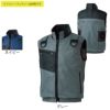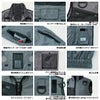 ●春夏用●素材:ドビー●混率:ポリエステル100%、[フロント・両脇ポケット・胸ポケット]コイル(引き手 金属)●撥水、実用新案取得、ベストタイプ、風気路、フルハーネス、立ち襟仕様、風気路メッシュ、織りネーム、胸ポケット(ケーブルホール付)、総ゴム仕様、左内側バッテリーポケット、両脇ポケット逆玉縁(ケーブルホール付)、ファン脱落防止ネット&ファン用取り付け部、保冷剤用メッシュポケット、ランヤード取り出し口●サイズ:M(着丈/64、肩巾/44、胸囲/112)、L(着丈/66、肩巾/46、胸囲/116)、LL(着丈/68、肩巾/48、胸囲/120)、3L(着丈/70、肩巾/50、胸囲/128)、4L(着丈/70、肩巾/52、胸囲/136)、5L(着丈/70、肩巾/54、胸囲/144)●カラー:ネイビー、グレー