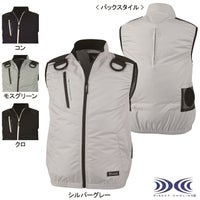 ●春夏用●素材:遮熱コーティングタフタ●混率:ポリエステル100%(裏遮熱コーティング)、樹脂ファスナー、樹脂ボタン(ドットボタン)●遮熱加工、紫外線カット、[フロント]左右に引っぱると瞬時に外せるクイックファスナー、[右胸]ファスナーポケット、[右胸(内側)]ポケット内ペンループ付き、[両肩]補強当て布付き。前部のフックかけDカン付き、[両脇]ファスナーポケット、[ファン部分(表側)]ファン落下防止メッシュ、[首元]調整ヒモで空気の抜けを調節、[左内側]バッテリーポケット、背中からランヤードを出し、取り出し口を絞ります、ランヤードを使用しない時はファスナー式で簡単に収納できます、右胸ポケット(巾15.5cm×深さ26cm)●サイズ:S(肩巾/41、胸囲/107、着丈/65、裾廻/72、裾廻最大/100)、M(肩巾/43、胸囲/111、着丈/67、裾廻/77、裾廻最大/105)、L(肩巾/45、胸囲/115、着丈/69、裾廻/82、裾廻最大/110)、LL(肩巾/47、胸囲/119、着丈/71、裾廻/87、裾廻最大/115)、3L(肩巾/49、胸囲/127、着丈/73、裾廻/92、裾廻最大/120)、4L(肩巾/51、胸囲/135、着丈/73、裾廻/97、裾廻最大/125)、5L(肩巾/53、胸囲/143、着丈/73、裾廻/102、裾廻最大/130)●カラー:コン、シルバーグレー、モスグリーン、クロ
