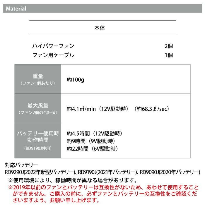 ◇RD9290J(2022年新型バッテリー)・RD9190J(2021年バッテリー)・RD9090J(2020年バッテリー)対応のファン