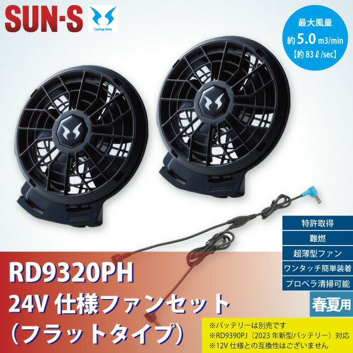 ファン付きウェア 春夏 サンエス 作業服 RD9320PH 24V仕様ファンセット(フラットタイプ) F 作業着