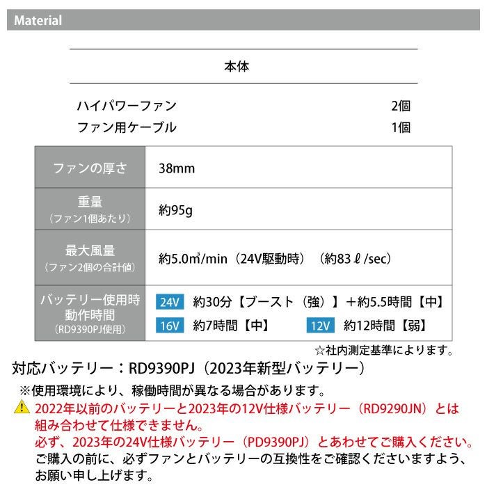 ◇24V仕様バッテリー(RD9390PJ新型バッテリー)対応。