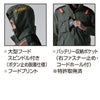 ◇ヘルメットに対応する大型フードは用途に合わせ着脱可能