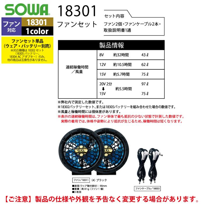 ファン付きウェア 春夏用 桑和 SOWA 18301 ファンセット F