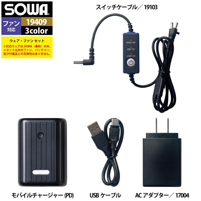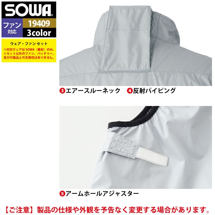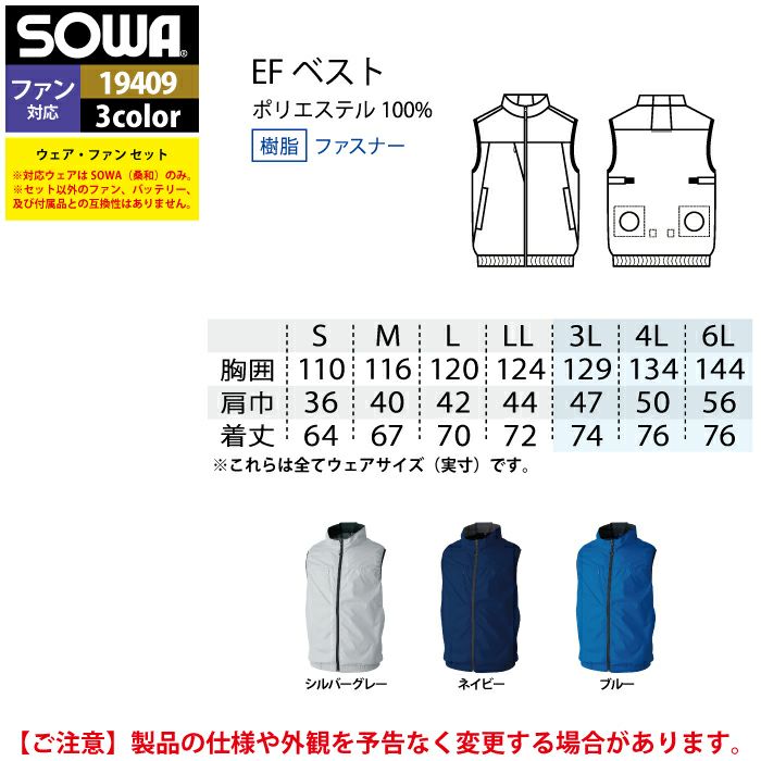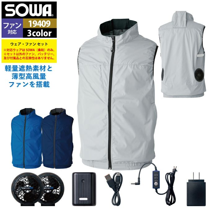 ファン付きウェア 桑和 SOWA 作業服 19409 EFコンプリートセット S-LL 作業着 オールシーズン