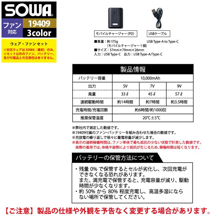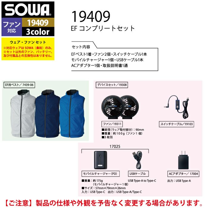 空調服 桑和 SOWA 作業服 作業着 ファン付きウェア 桑和 SOWA 作業服 19409 EFコンプリートセット S-LL 作業着 オールシーズン