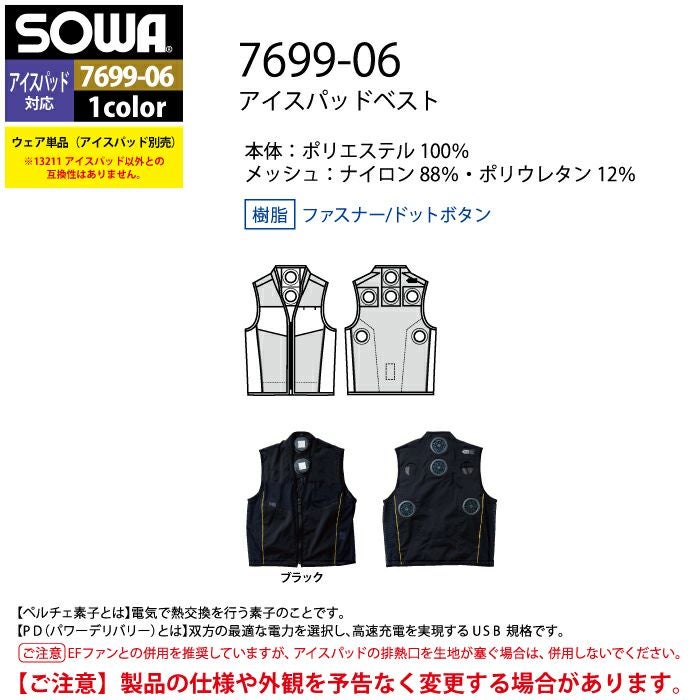 空調服 桑和 SOWA 作業服 作業着 ファン付きウェア(服のみ) 桑和 SOWA 作業服 7699-06 アイスパッドベスト 4L 作業着 春夏