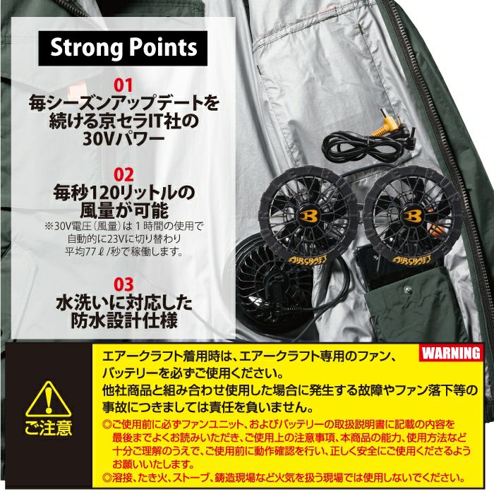● エアークラフト着用時はエアークラフト専用のファン・バッテリーを必ずご使用ください