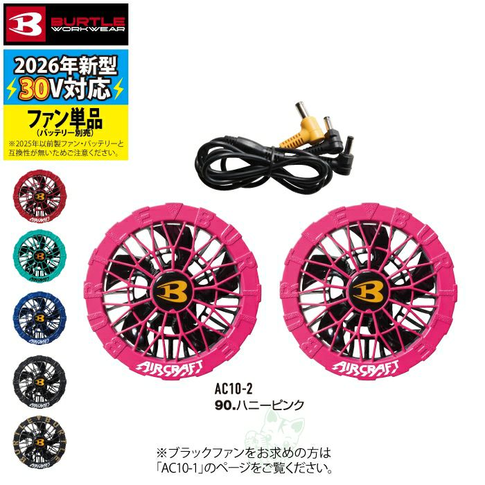 2026SS最新エアークラフトカラーファン 【予約第2弾】バートル BURTLE 2026春夏新作 エアークラフト AC10-2 30V対応カラーファンユニット 作業服 作業着 水洗い AC10バッテリー対応