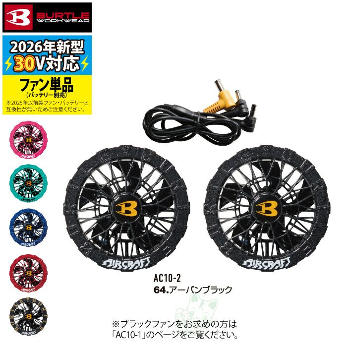 【予約第2弾】バートル BURTLE 2026春夏新作 エアークラフト AC10-2 30V対応カラーファンユニット 作業服 作業着 水洗い AC10バッテリー対応