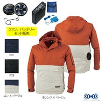 ワークにも、レジャーにも使えるアノラックタイプ!ワークシーン以外にレジャーでも快適に!単色とツートーンカラーのラインナップでシーンに合わせてオシャレに熱中症対策を。フード付きで日焼け対策もバッチリ!身頃の膨らみを抑えたシャープなシルエット。ボトムを選ばないシンプルなデザインは男女問わず着用いただけます!フロントのデカポケットが便利。【取り扱い上のご注意】炎天下の車内等(高温の場所)に放置しないよう、ご注意ください。羽が折れる場合があるため、エアーガンによるファンの清掃は行わないでください。専用バッテリー以外は使用しないでください。故障や事故の原因になります。この素材は、火気に弱いので火気を扱う現場では着用しないでください。