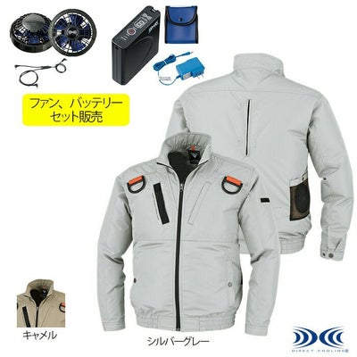 ●春夏用●素材:高密度ポリエステルタフタ ポリエステル100%、樹脂ファスナー、樹脂ボタン(ドットボタン)●空調服に最適な高密度ポリエステル素材、左右胸ポケット(巾12.5cm×深さ17cm)、<両胸>ペン差し。<左袖>ペン差し。<袖口>アジャストボタン。<肘・肩>2重仕様で丈夫。<左内側>バッテリーポケット。<両胸>ファスナー付きポケット。<首元>調整ヒモで空気の抜けを調節。<シルエット>身頃の膨らみを抑えたシャープなシルエット。●サイズ:S(肩巾/45、胸囲/109、袖丈/53.5、着丈/62、裾廻/72、裾廻最大/102)、M(肩巾/47、胸囲/113、袖丈/55.5、着丈/64、裾廻/77、裾廻最大/107)、L(肩巾/49、胸囲/117、袖丈/57.5、着丈/66、裾廻/82、裾廻最大/112)、LL(肩巾/51、胸囲/121、袖丈/59.5、着丈/68、裾廻/87、裾廻最大/117)、XL(肩巾/53、胸囲/129、袖丈/61.5、着丈/70、裾廻/92、裾廻最大/122)、4L(肩巾/55、胸囲/137、袖丈/59.5、着丈/70、裾廻/97、裾廻最大/127)、5L(肩巾/57、胸囲/145、袖丈/59.5、着丈/70、裾廻/102、裾廻最大/132)●カラー:シルバーグレー、チャコールグレー、モスグリーン●空調服はセフト研究所・空調服の特許および技術を使用しております。DIRECT COOLINGロゴはセフト研究所・空調服の登録商標です。