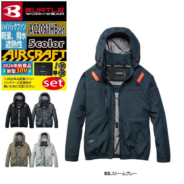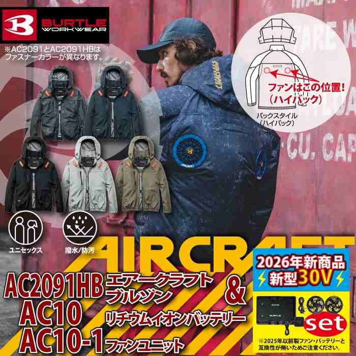 バートル BURTLE 作業着 2026春夏新作 エアークラフト AC2091HBブルゾン+ファン+バッテリー 30Vフルセット AC10 AIRCRAFT