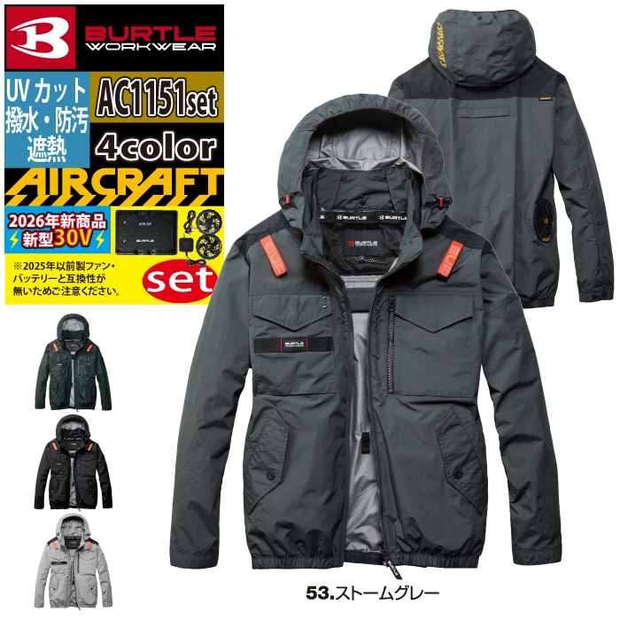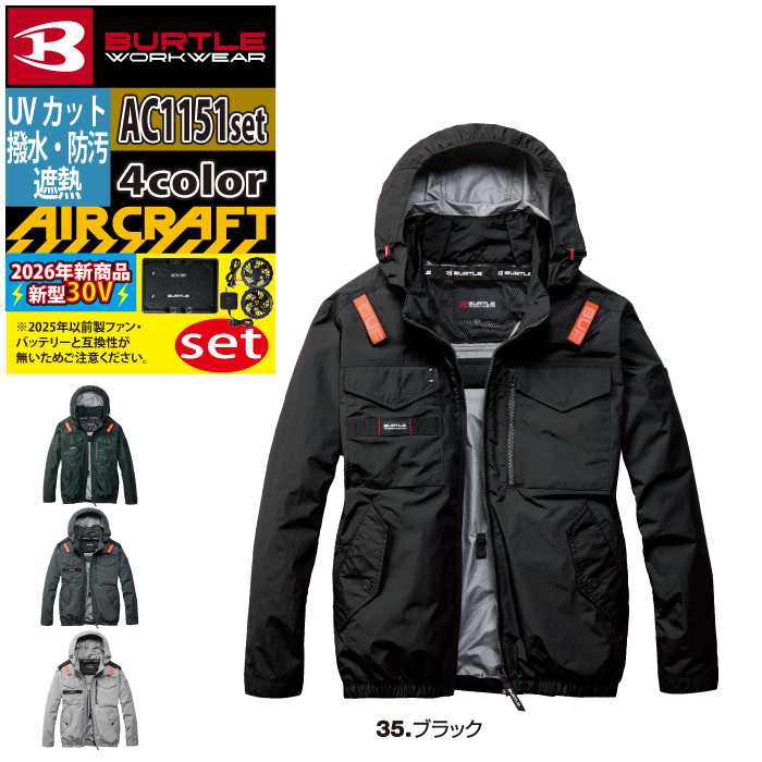 2026新型30Vバッテリー&30V対応ファンセット バートル BURTLE 作業着 2026春夏新作 エアークラフト AC1151ブルゾン+ファン+バッテリー 30Vフルセット AC10 AIRCRAFT