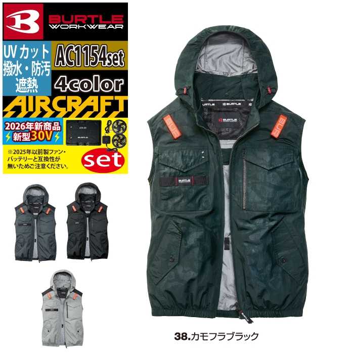 バートル BURTLE 作業着 2026春夏新作 エアークラフト AC1154ベスト+ファン+バッテリー 30Vフルセット AC10 AIRCRAFT