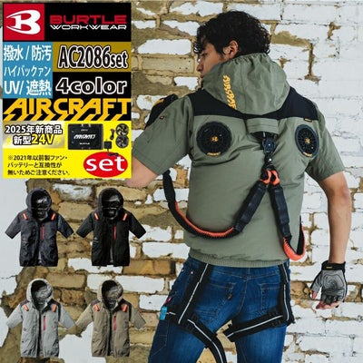 バートル BURTLE 作業着 2025春夏新作 エアークラフト AC2086 半袖ブルゾン+ファン+バッテリー 新型24Vフルセット AC09