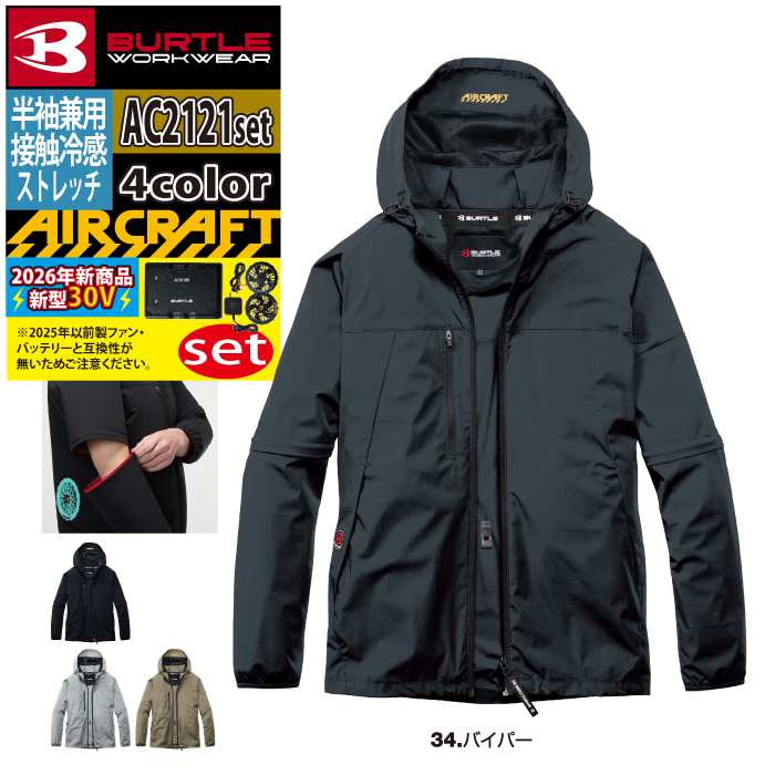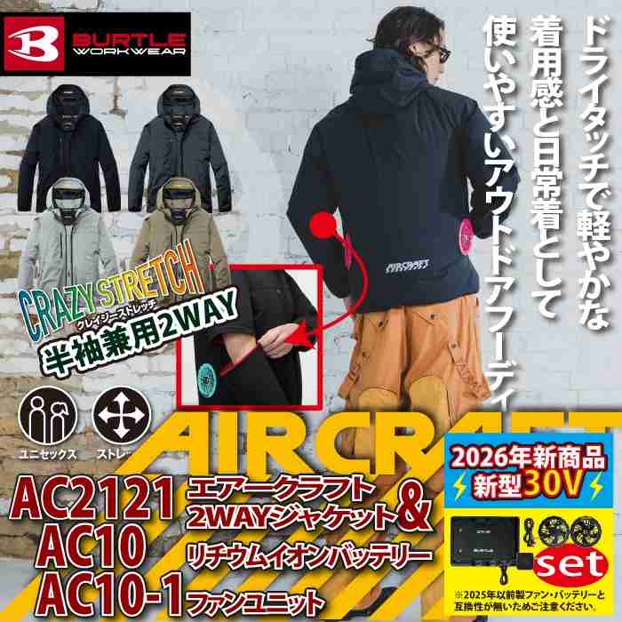 バートル BURTLE 作業着 2026春夏新作 エアークラフト AC2121ブルゾン+ファン+バッテリー 30Vフルセット AC10 AIRCRAFT